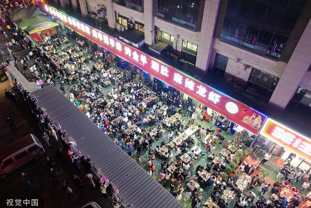 2023年4月16日,山东淄博,牧羊村烧烤店生意火爆。 视觉中国 图