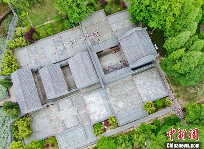研学游学子正在参观肥西县铭传乡刘铭传故居。(无人机照片) 陈家乐 摄