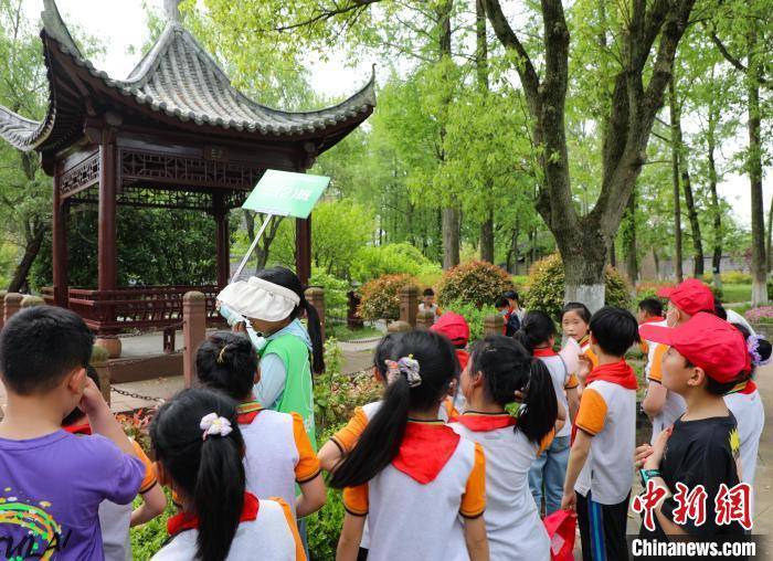 在安徽省肥西县铭传乡刘铭传故居,研学游学子正在参观故居的盘亭景点。 陈家乐 摄