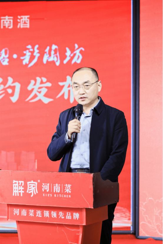 “吃河南好吃,必须有河南好酒”,河南省餐饮与住宿行业协会驻会副会长蒋辉在致辞中表示,“解家河南菜和仰韶·彩陶坊正式开启战略合作,属于河南两大IP级品牌的强强联合,期待两家企业一起努力,认真打造百年老店。”