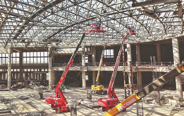 冰雪馆内正在进行钢结构和二次结构施工。本报记者 蒋国红摄