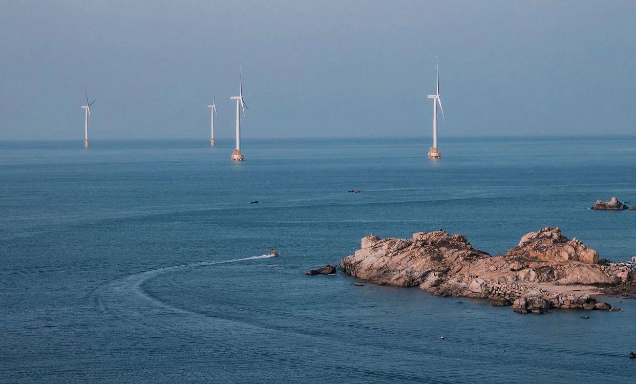 苍天不负迟钝人,误了返程的我终于在长江澳和北部湾见到真正的平潭蓝,蔚蓝的天空、湛蓝的海面、微澜的海浪、悠悠的风车,醉倒了海岸边所有的人,快艇在海面上疾驰,时而直线、时而弯转,在海上风车之间划着一个个优美的曲线,夕阳西下,晚霞轻上,风车轻摇,海面宁静,上帝之手把北部湾海面绘成一幅浪漫的海上风情图,我简直要哭了。