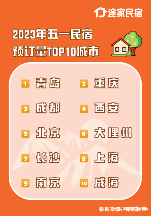 不仅是淄博,作为近年最火五一,旅游需求爆发,民宿市场也随之迅速恢复。途家民宿发布《2023五一民宿出游报告》显示,截至4月17日,平台五一民宿提前预订量是2019年同期的2倍,平均间夜价格达到534元。今年五一最热门的十大城市中,山东独中两元,青岛超过传统热门城市成都和重庆,首次第一,威海第十。
