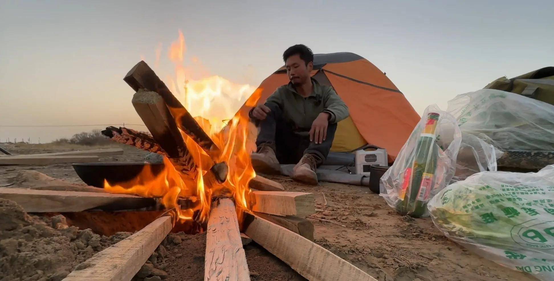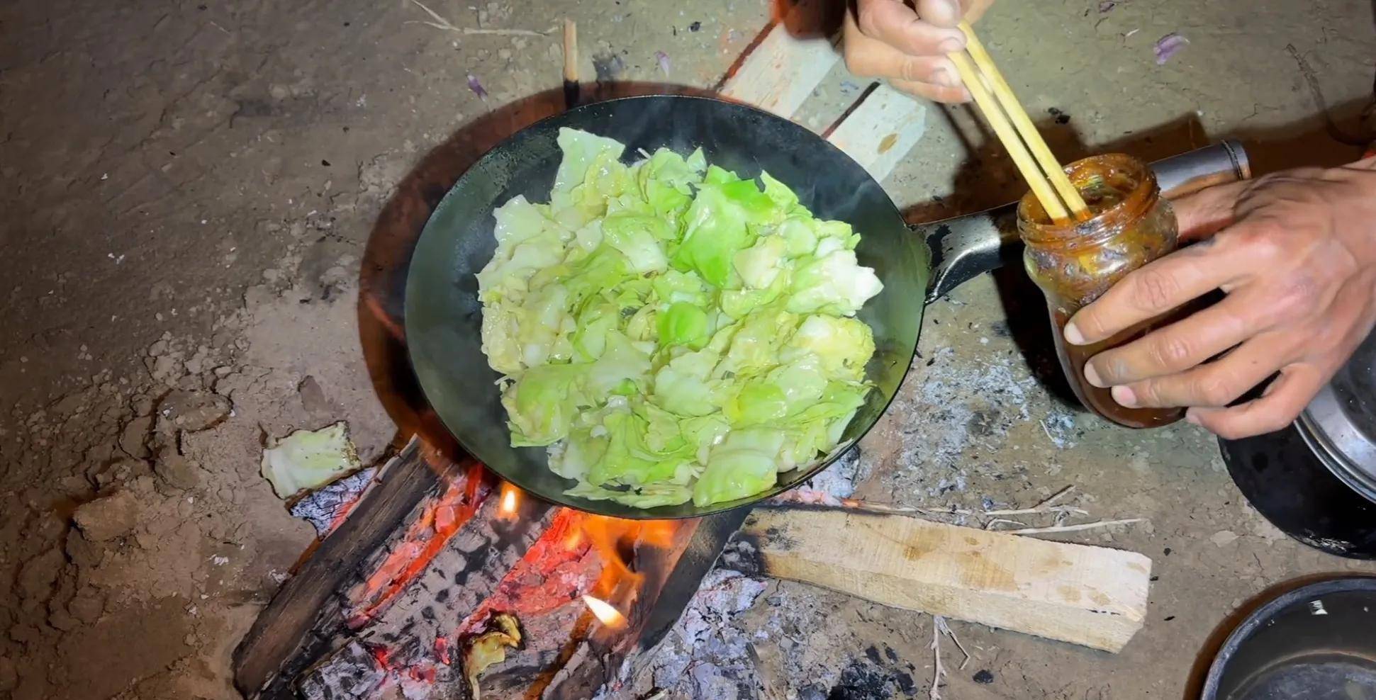 露营的时候是遇到捕鱼人的,晚上大铁锅炒包菜,百分之百好吃。