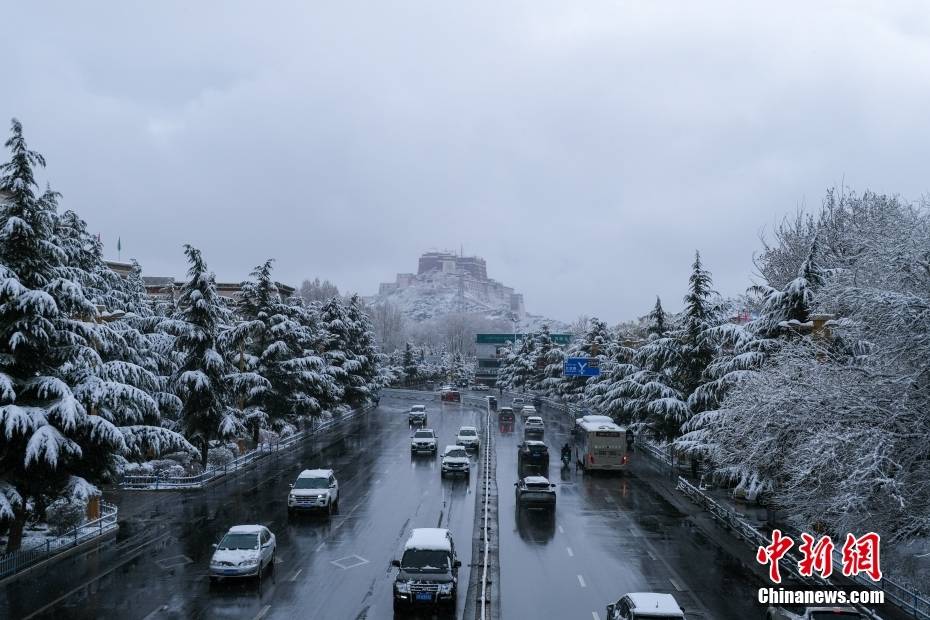 拉萨银装素裹,市民驾车出行。中新社记者 江飞波 摄