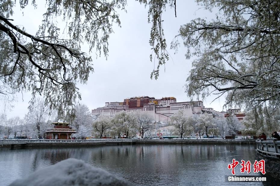 3月30日,春意盎然的西藏拉萨迎来一场“桃花雪”,白雪与春景相互交织。图为雪后布达拉宫。中新社记者 江飞波 摄