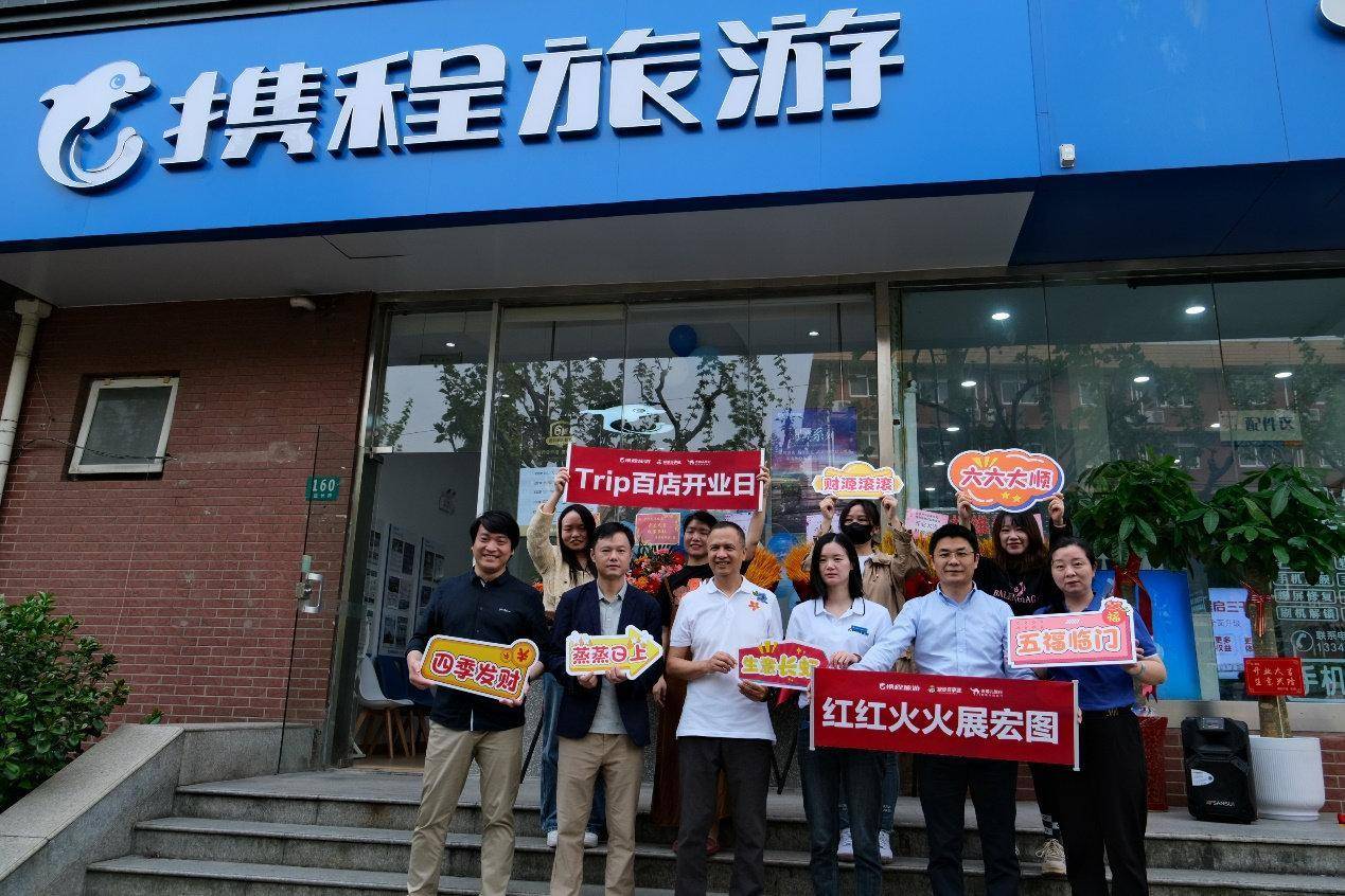 携程旅游渠道事业部CEO张力与上海一家门店工作人员开业剪彩