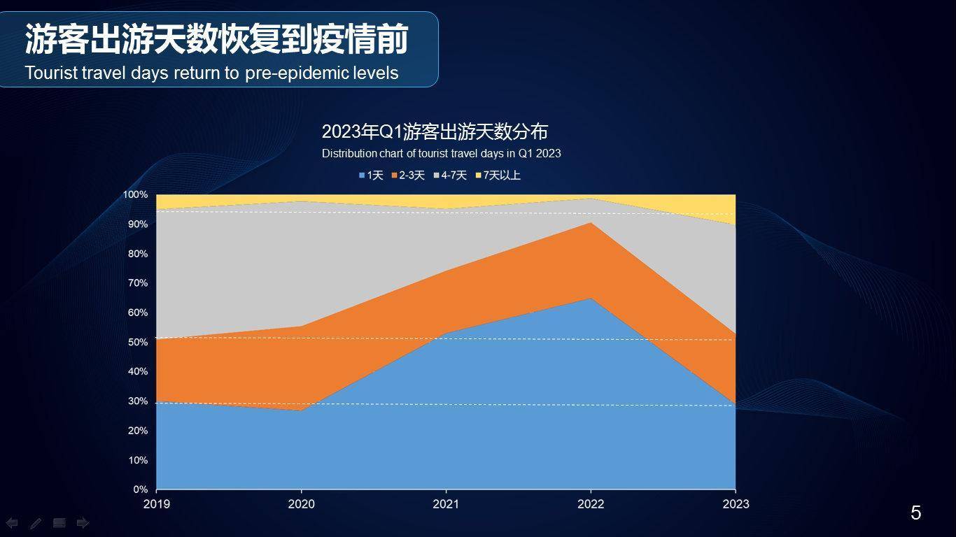 相比2022年大量订单游览时间在3日以内,如今门店的50%以上订单回归到4日游以上产品;值得一提的是,7日以上的旅游产品售卖超过2019年同期,旅游恢复后更多人希望走得更远。