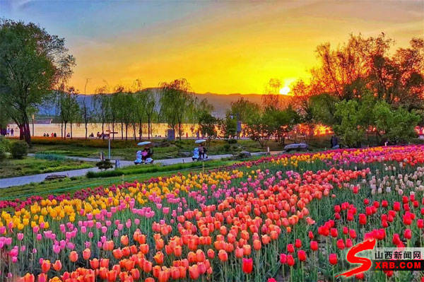 又是一年芳草绿,又是一度春花红,走进太原市晋阳湖公园,百万余株郁金香迎来盛花期,一株株恣意绽放的花朵在春风中摇摆。近日,以“又‘郁’晋阳湖”为主题的太原市第十五届公园“一园一品”活动暨晋阳湖公园第四届郁金香花展开幕,给前来踏青赏花的游客献上一场花海盛宴。