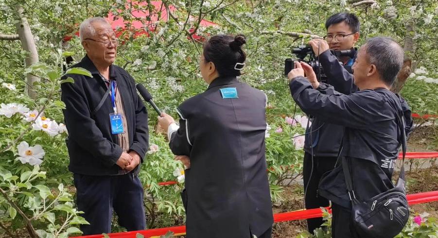 节日当天,南张乡党委书记李红全亲临现场,深入查看牡丹和苹果套种情况,详细询问种植收益,同时对严效光的做法表示赞同。