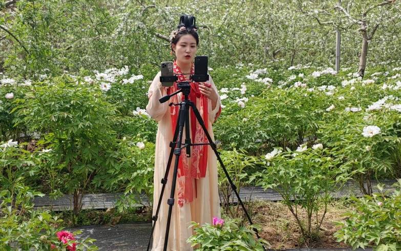 除了民间艺人表演、牡丹游园、书法展吸引客人外,严效光还邀请了网红万荣牡丹谷凤姐倾力助阵,同时在蓝青电商协助下,购入了直播灯、支架等设备,“往年都是北上广客人订购牡丹籽油,本地销路还没有打开,通过直播让更多人知道万荣牡丹,拓宽牡丹副产品销售渠道,带领花农一起致富”,严效光笑着说。