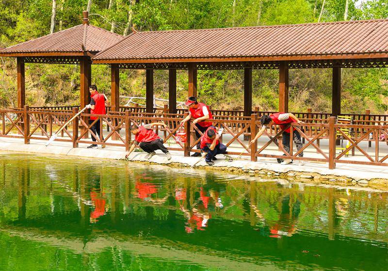 【乡旅画报讯】(张明杰)2023年4月18日,运城市夏县南大里乡机关党员干部、志愿者在果老沟景区捡拾垃圾、打捞河面杂物。
