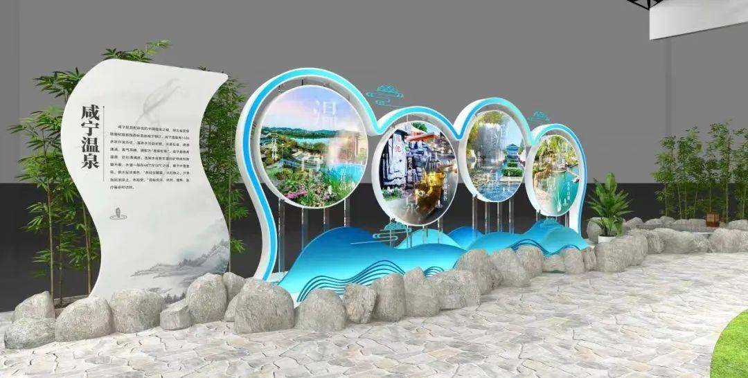 在另一侧的打卡墙处,运用了温泉水、九宫山和桂花树的元素,凸显出“温泉之城 桂乡咸宁”的美誉。