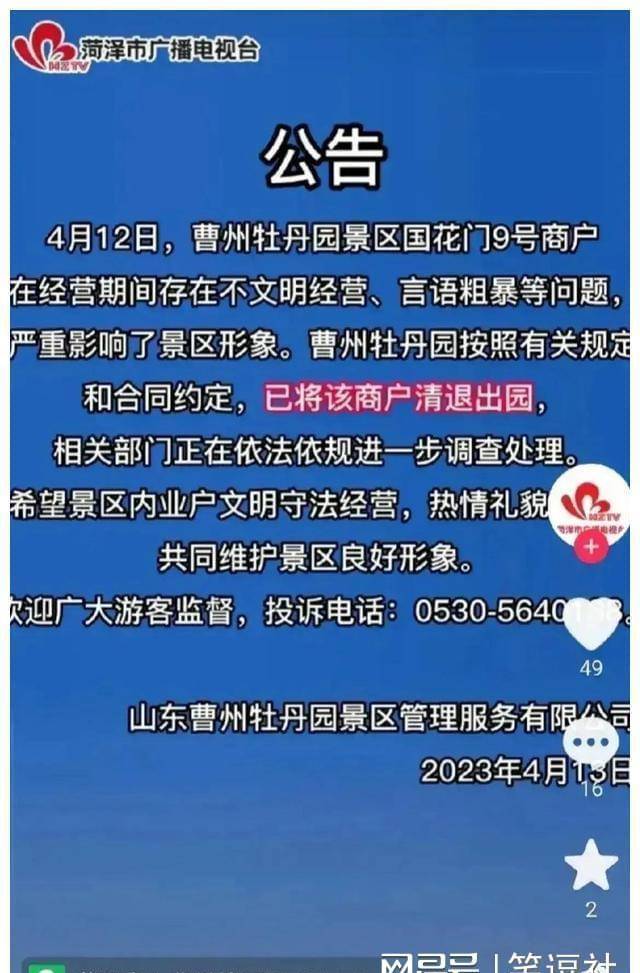 因此,网上有人说,老板娘凭一己之力干倒旅游业,坑了一座城,我觉得有点太夸张了,不可否认影响是会有,但我相信五一假期,还是有很多人选择去菏泽旅游的。因此好客山东欢迎您!牡丹花之乡菏泽欢迎您!