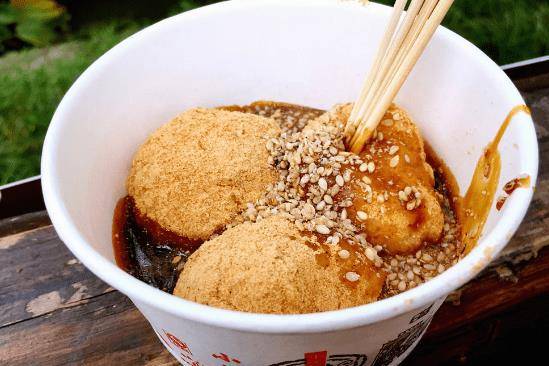 第一种:三炮,是四川流行的地方小吃。它在这个过程中会发出“啪”的一声,因此得名。三炮口感软糯,撒上花生粉,味道不错。