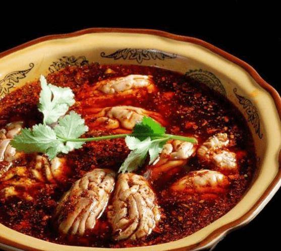 第二种:脑花,也是四川很有特色的食物。它们具有辛辣的脑花和老鼠胡椒味。他们真的很喜欢吃脑花。他们认为味道细腻温和。真的超级好吃。.但是很多老外听到这个名字觉得有点残忍,不敢吃,而四川人却觉得不可食,不敢吃这么好吃的菜。