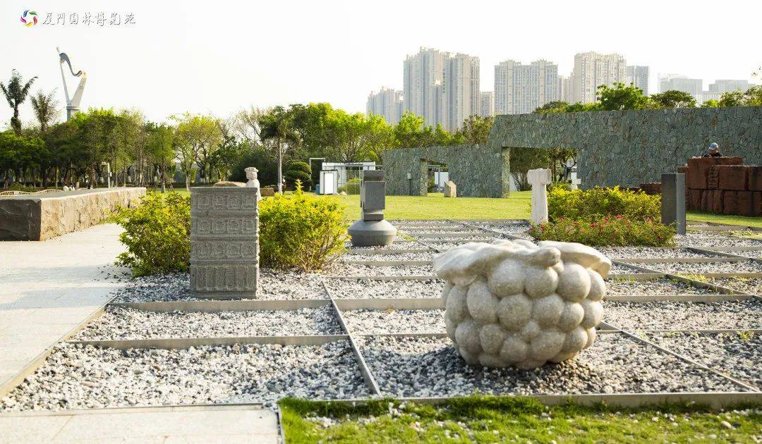 特里尔园的设计灵感来自厦门友城特里尔周围地区的自然景观特征,并融入了城市的历史。“棋盘”上单个小区域种植地被植物,不同的绿植铺设和花坛象征着城市的多样性。( 林斌享 摄)