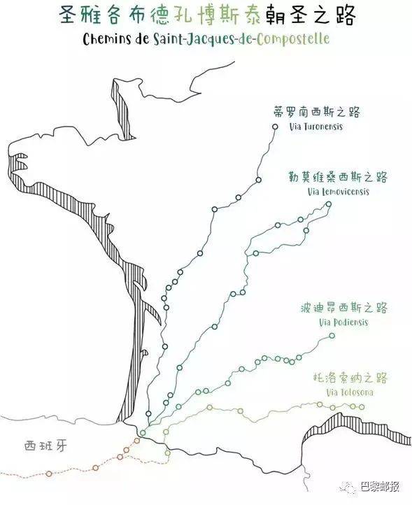 巴黎Léo(任由之):全程800 公里的托洛索纳之路是最南边的道路,始于普罗旺斯的阿尔勒,经过南部的蒙彼利埃和西南部的卡斯特尔、图卢兹、奥洛龙-圣玛丽,经由松波特山口翻越比利牛斯山进入西班牙。
