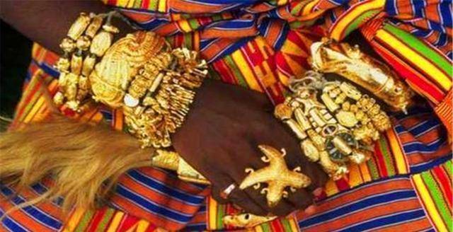 酋长不仅是金椅的继承者,其拥有的黄金更是无可计量,王冠、手账、项圈、手镯等全是黄金打造,每一个分量还都不轻,从里而外向你表达不差黄金的意思。更奇葩的是,黄金拖鞋,黄金手机,黄金车,黄金眼镜,黄金拐杖在市场上应有尽有,完全是普通人都能享受到的东西,真的让人大开眼界。