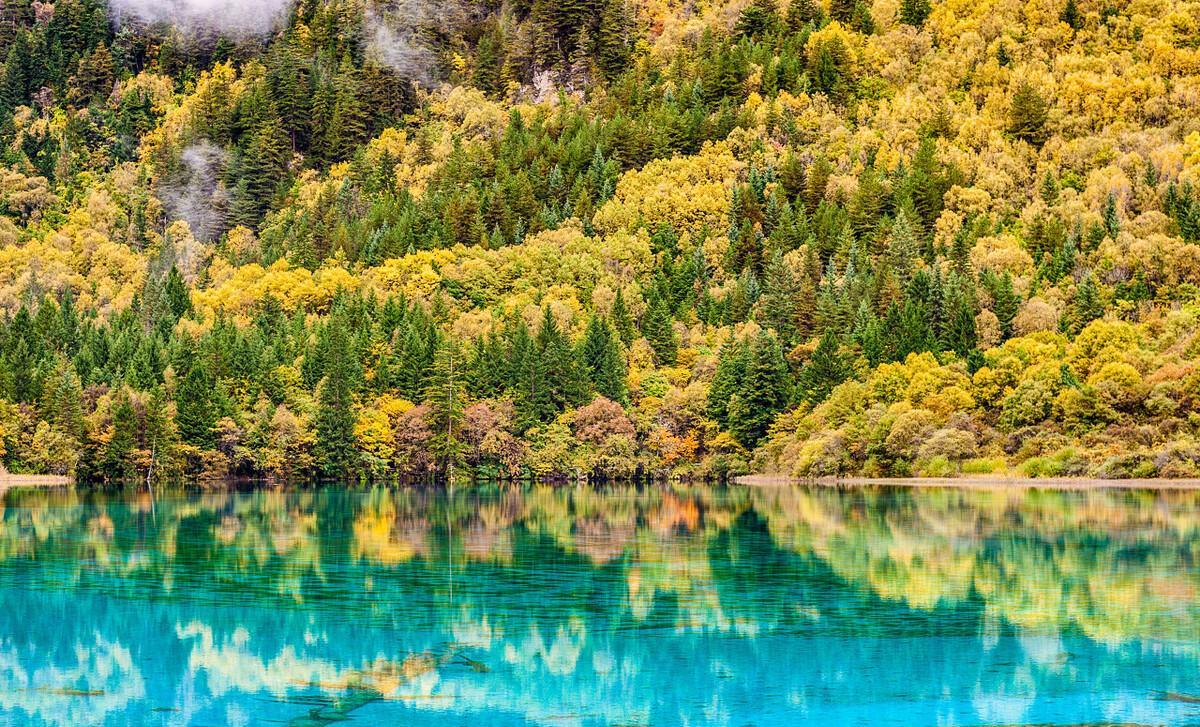2.五花海:五花海是一个由五个瀑布形成的湖泊群,每个湖泊都有着不同的颜色和形状,非常独特。五花海的湖泊都比较浅,能够清晰地看到湖底的石头和树枝,让人感觉像置身于一个色彩斑斓的水晶宫殿中。