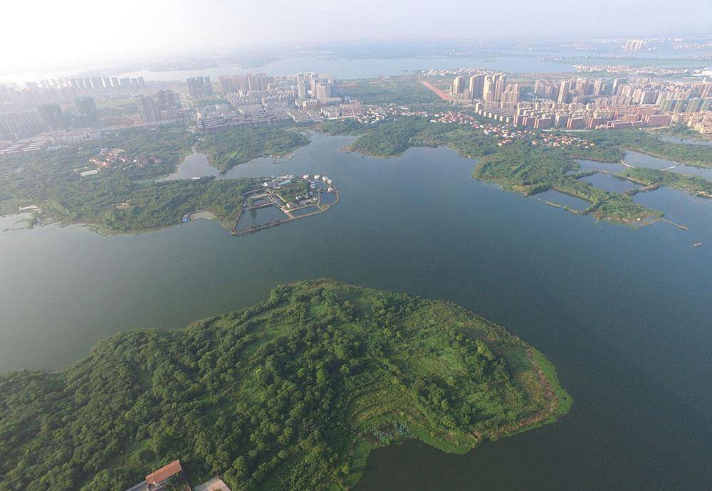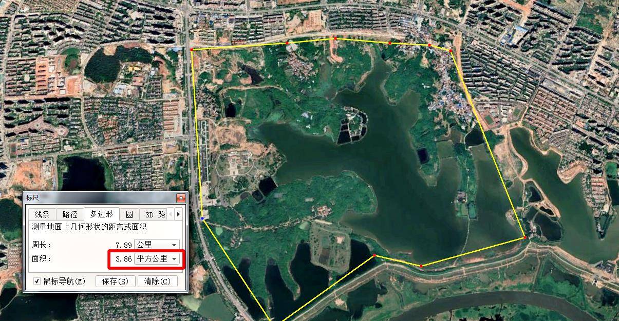 小编在卫星地图上测量了一下,盘龙城遗址公园面积巨大(北抵太和小区,西面是盘龙大道,南侧为府河,东侧为规划中的盘龙三路南延长线),接近4平方公里,水面占了一半,陆地深入湖泊,产生了许多的半岛,如果建设好了,景色相当美丽。