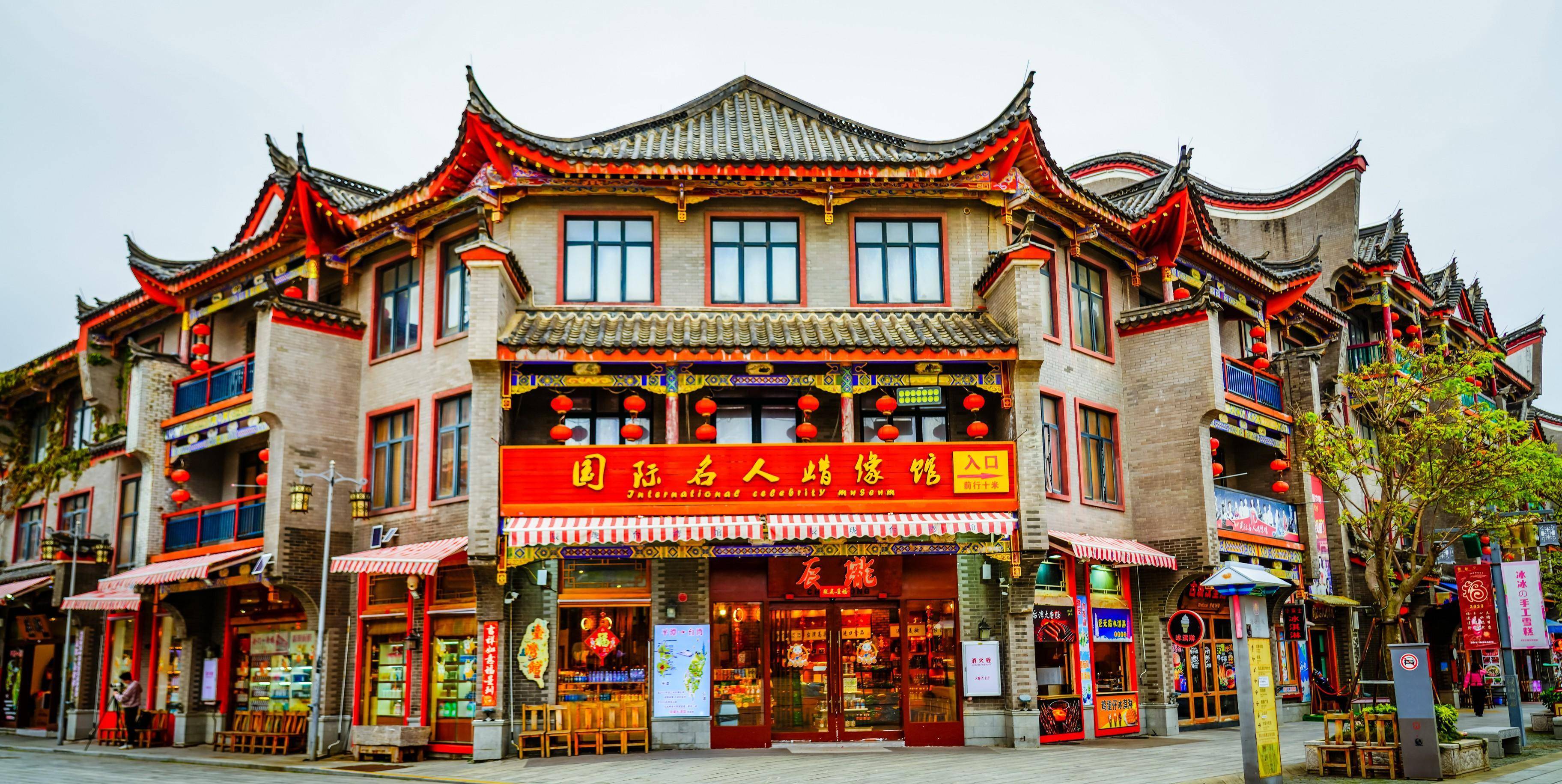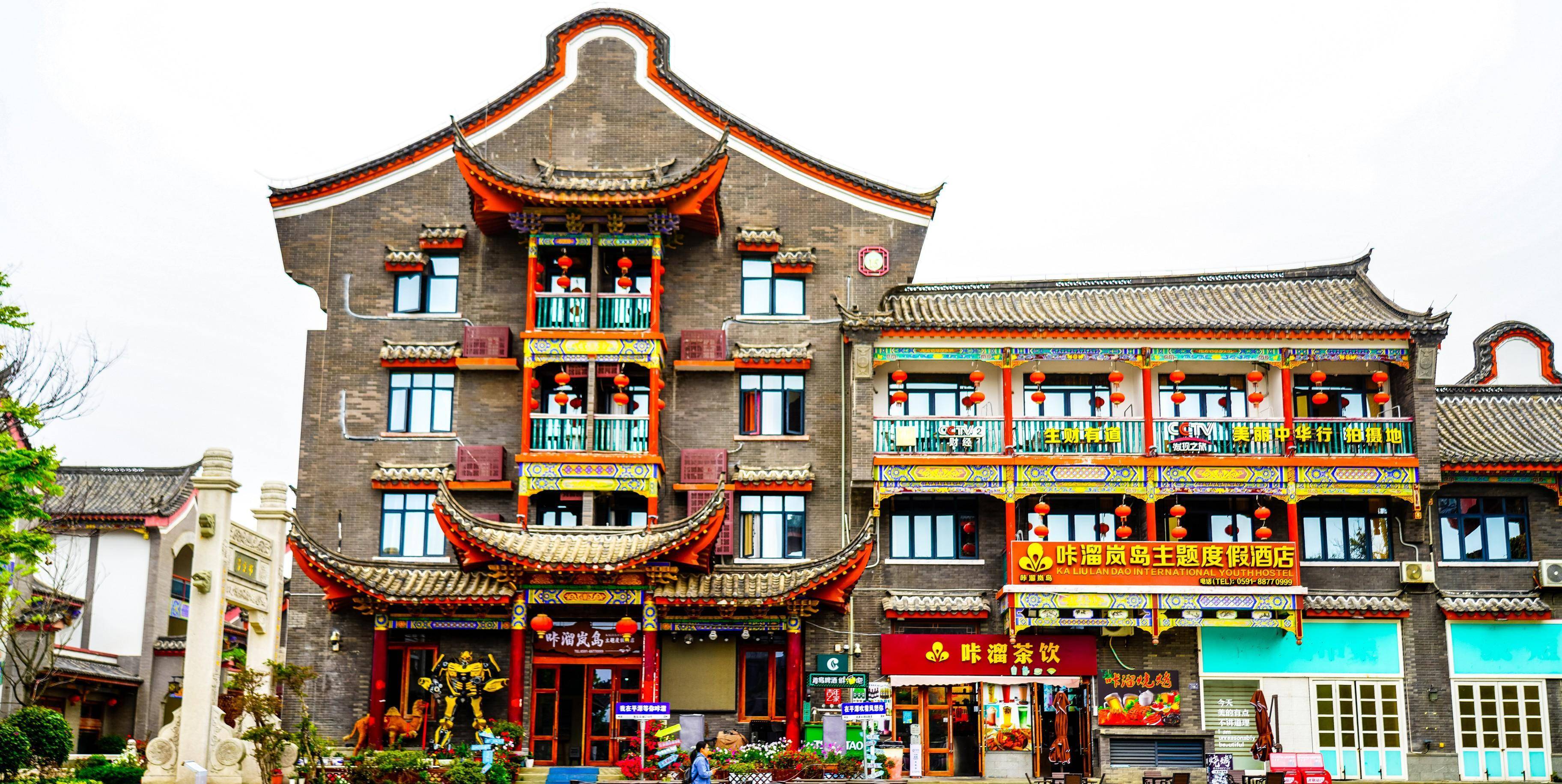 走过海坛古城牌坊,成功大道两旁都是鳞次栉比的明清风格仿古建筑。闽台小吃、酒店客栈、文艺店铺、网红打卡点以及台湾特产超市分布其间,让人眼花缭乱、应接不暇。