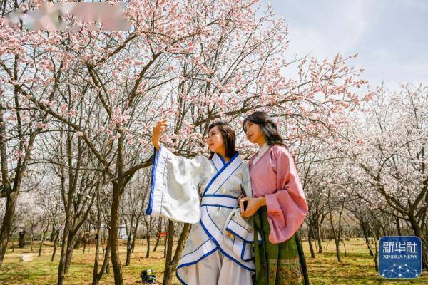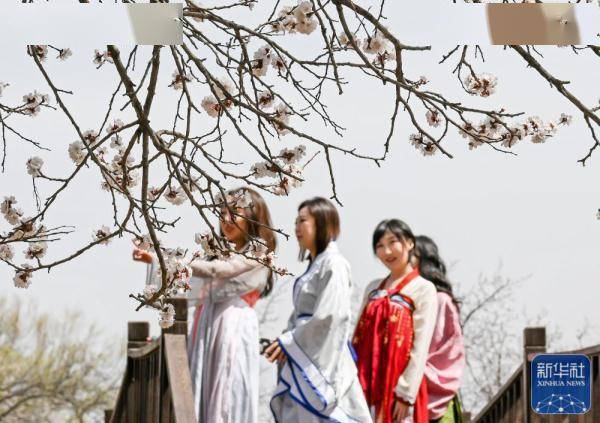 近日,塞外青城内蒙古呼和浩特市大青山前坡的杏花竞相开放,当地举办了主题为“古风古韵踏青游园”的活动,吸引了众多传统服饰爱好者和市民参与。