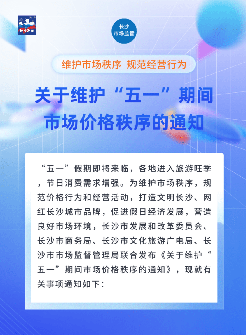 湘江新区有关部门和各区县(市)发改、商务、文旅(广)体、市场监管等部门要依据各自职能职责,全面加强假日期间消费市场经营价格监督检查,对影响市场价格的行为开展提醒告诫、消费提示;对不按规定明码标价、不执行价格政策、实施价格欺诈等违法行为,依法严肃处理,并曝光典型案例;对在市场经营中存在价格严重失信的经营单位和个人,依法依规列入失信联合惩戒对象,切实维护消费者合法权益。