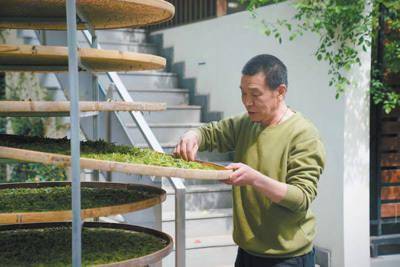 “也是巧了!原本两周前房间就预订光了,有个来自上海的团队预约到茶山采茶,但今天客人临时调整房间,多出来一间房,你们感兴趣也可以去采茶。”毕建林说,“茶园就在后山上,走着就到了。明天上午采茶,下午晾晒,晚上炒制,当晚就能喝到自己亲手摘的绿茶了。”杜有鹏和老伴儿听了很感兴趣,当即决定多住一晚。