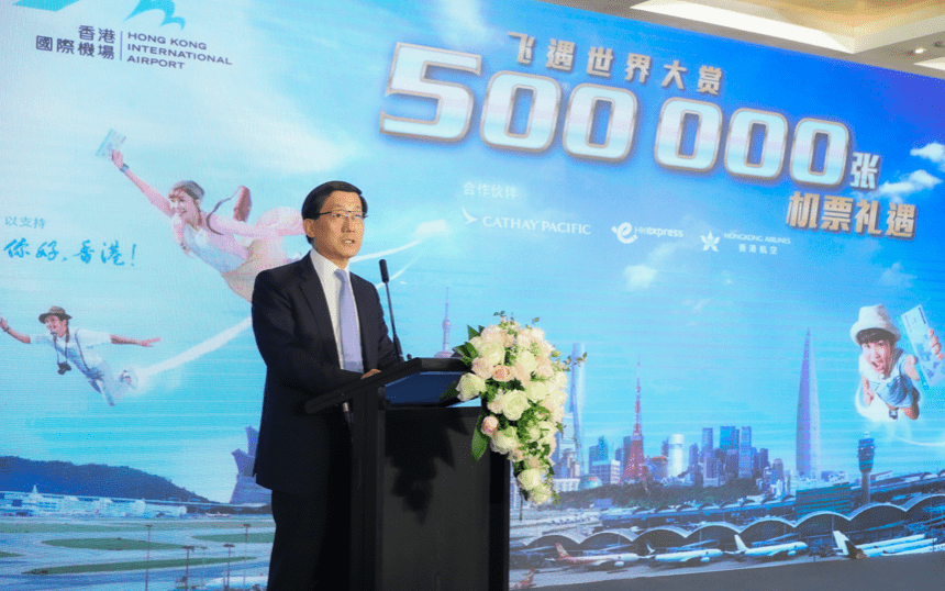 机管局行政总裁林天福表示,香港国际机场积极支持特区政府的“你好,香港!”全球推广活动,并且全资赞助香港的几家基地航空公司,向全球旅客送赠超过50万张机票,鼓励他们早点到香港来。一直以来,内地旅客都是访港旅客的重要组成部分,所以香港也特别预留了14万张机票给内地旅客,吸引他们到香港旅游观光。