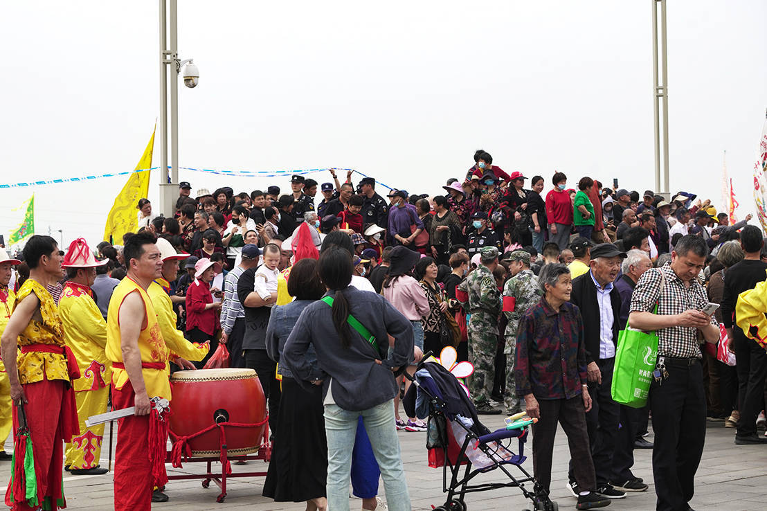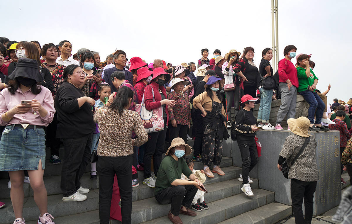 4月18日,嘉兴秀洲区,中国江南网船会开幕日,前来观看表演的游客站满台阶。