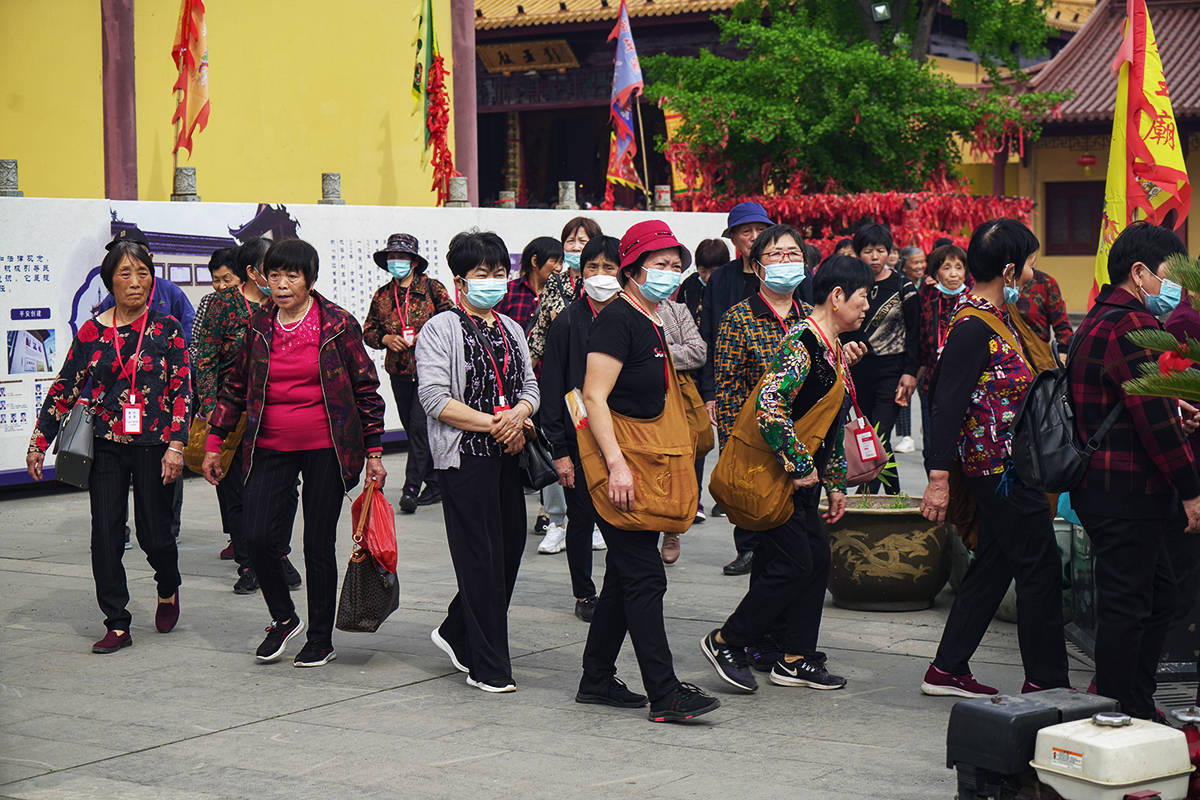 4月18日,嘉兴秀洲区,中国江南网船会开幕日,刘王庙内的游客们。