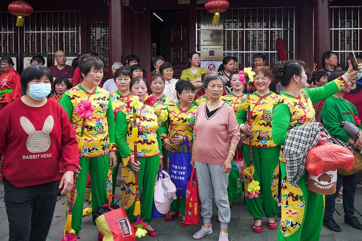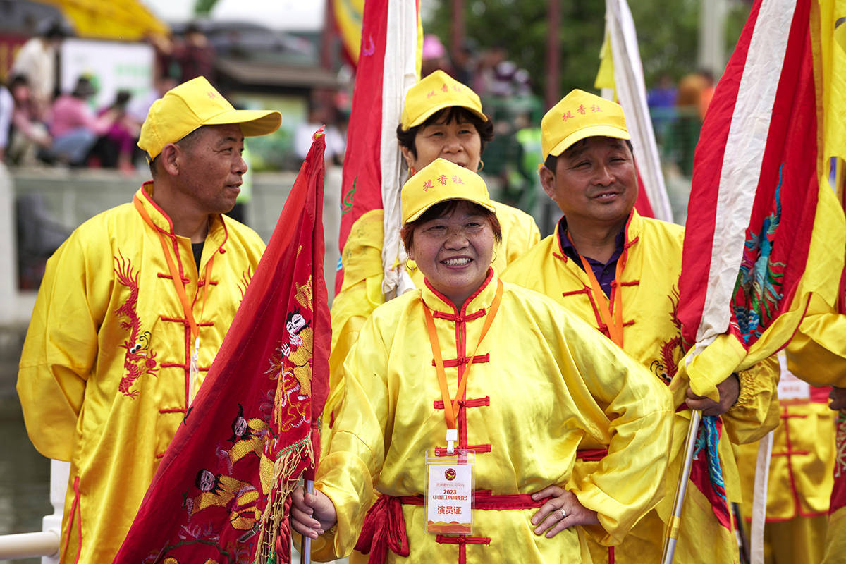 4月18日,嘉兴秀洲区,中国江南网船会开幕日,准备进行民俗巡游的社团成员们。