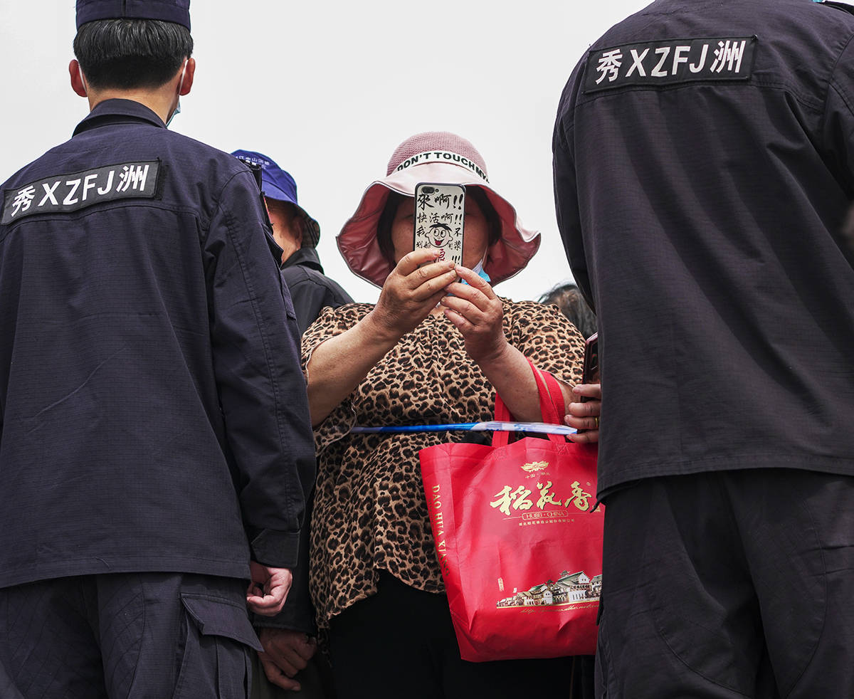 4月18日,嘉兴秀洲区,中国江南网船会开幕日,社团正在穿过警戒线,准备民俗巡游。