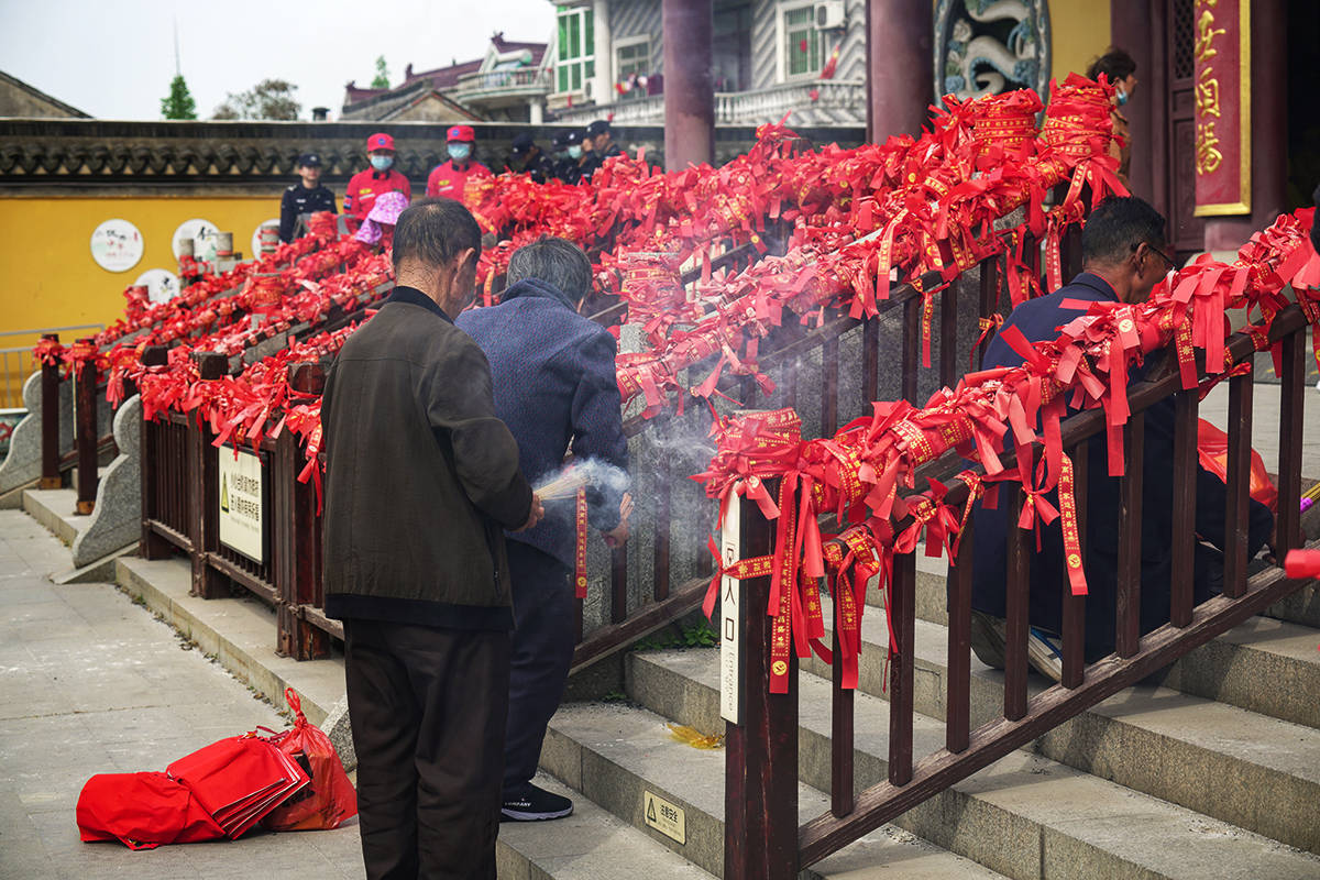 4月18日,嘉兴秀洲区,中国江南网船会开幕日,刘王庙内游客正在祈福。