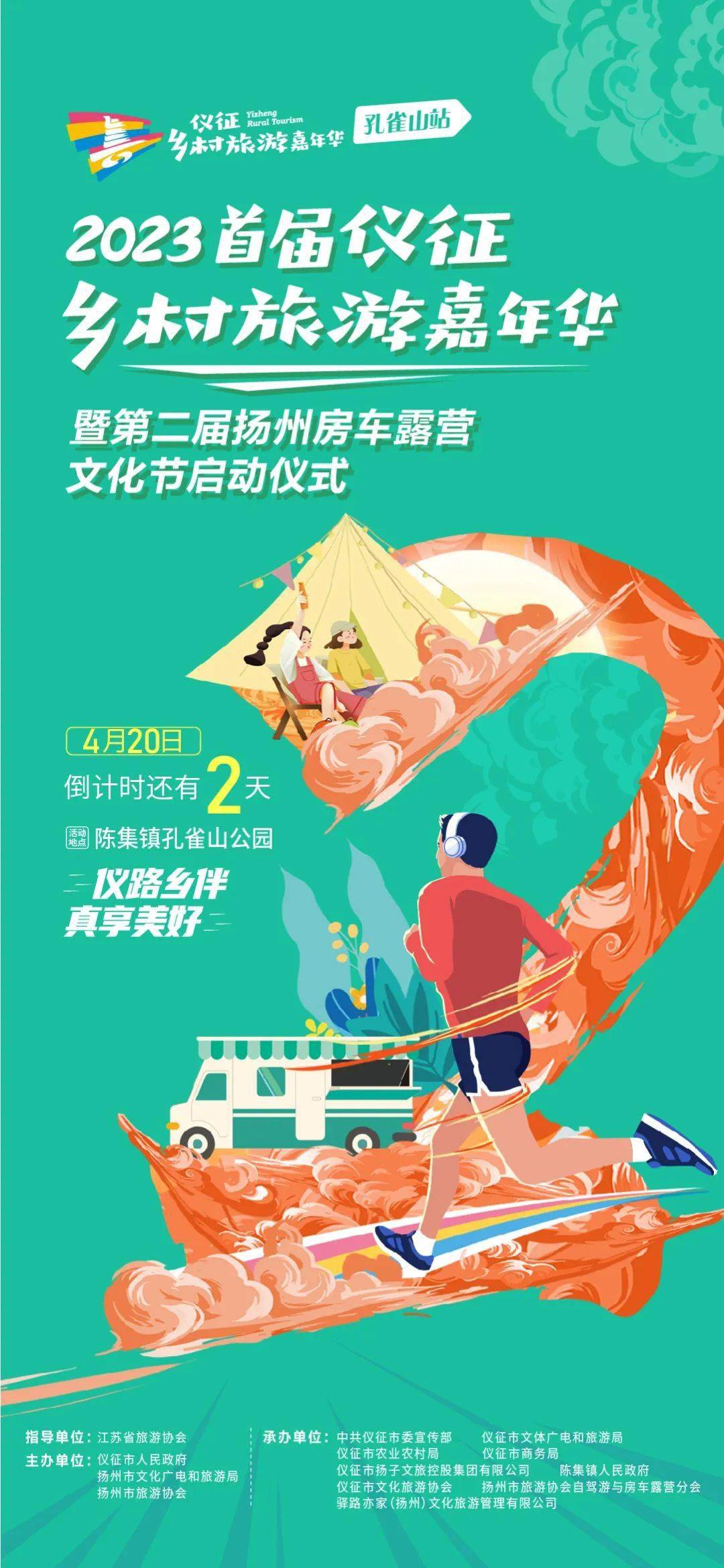 承办单位:中共仪征市委宣传部、仪征市文体广电和旅游局、仪征市农业农村局、仪征市商务局、扬子文旅集团控股有限公司、陈集镇人民政府、仪征市文化旅游协会、扬州市旅游协会自驾游与房车露营分会、驿路亦家(扬州)文化旅游管理有限公司