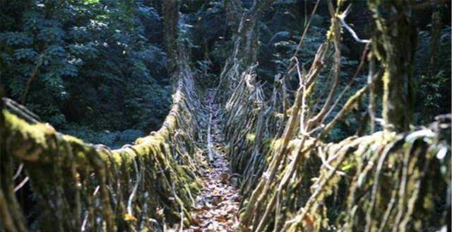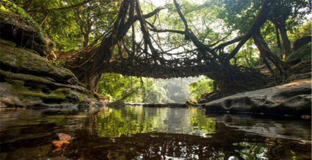 有没有这样一种桥梁不需要人类定期的维护保养,也不用担心出现质量安全问题,答案也是有的,印度乞拉朋齐第五的树桥就是这样的,顾名思义,这是大自然的杰作,没有特别的设计,纯粹的原生态材料,不用维修保养,越用越坚固。