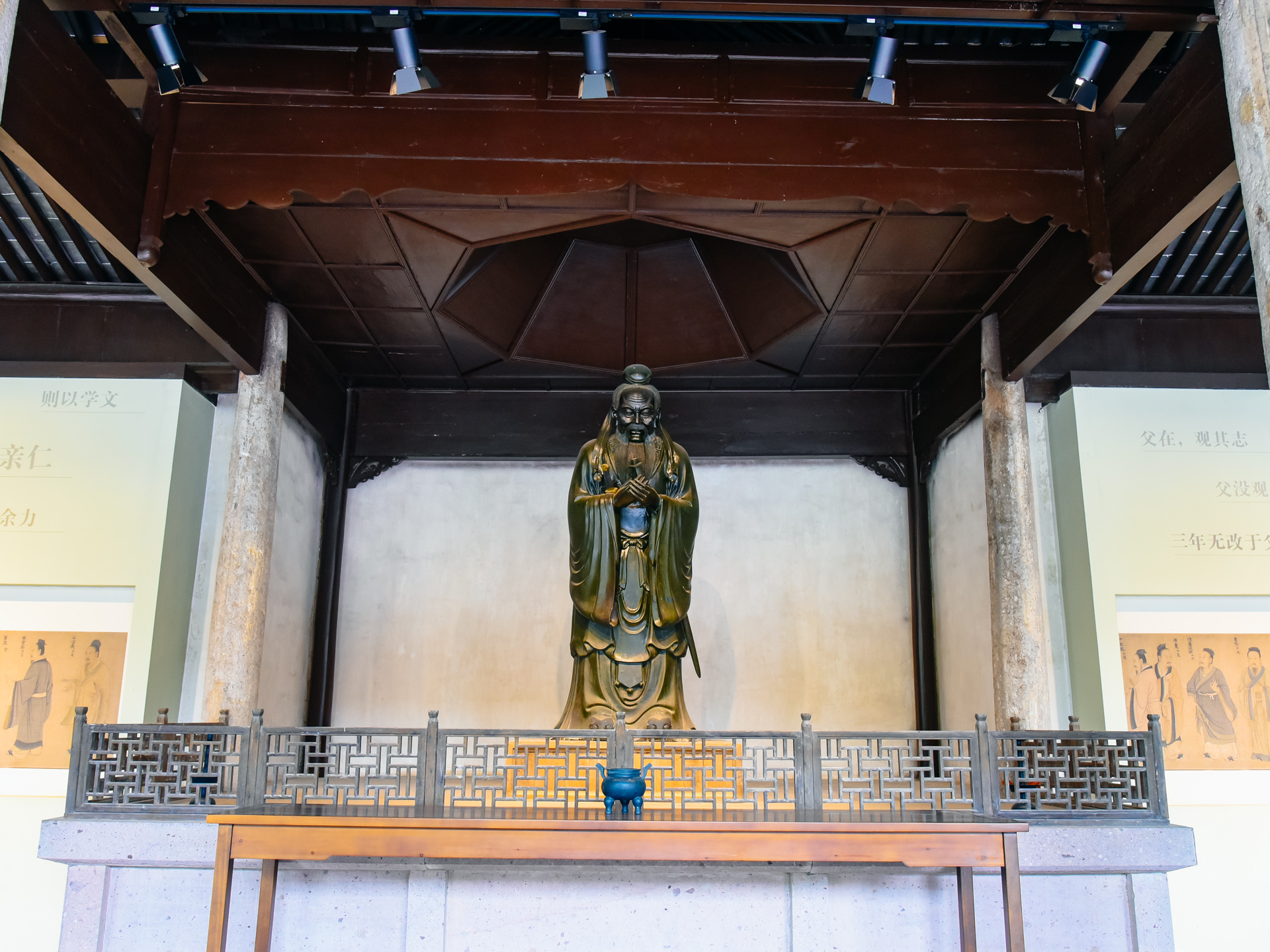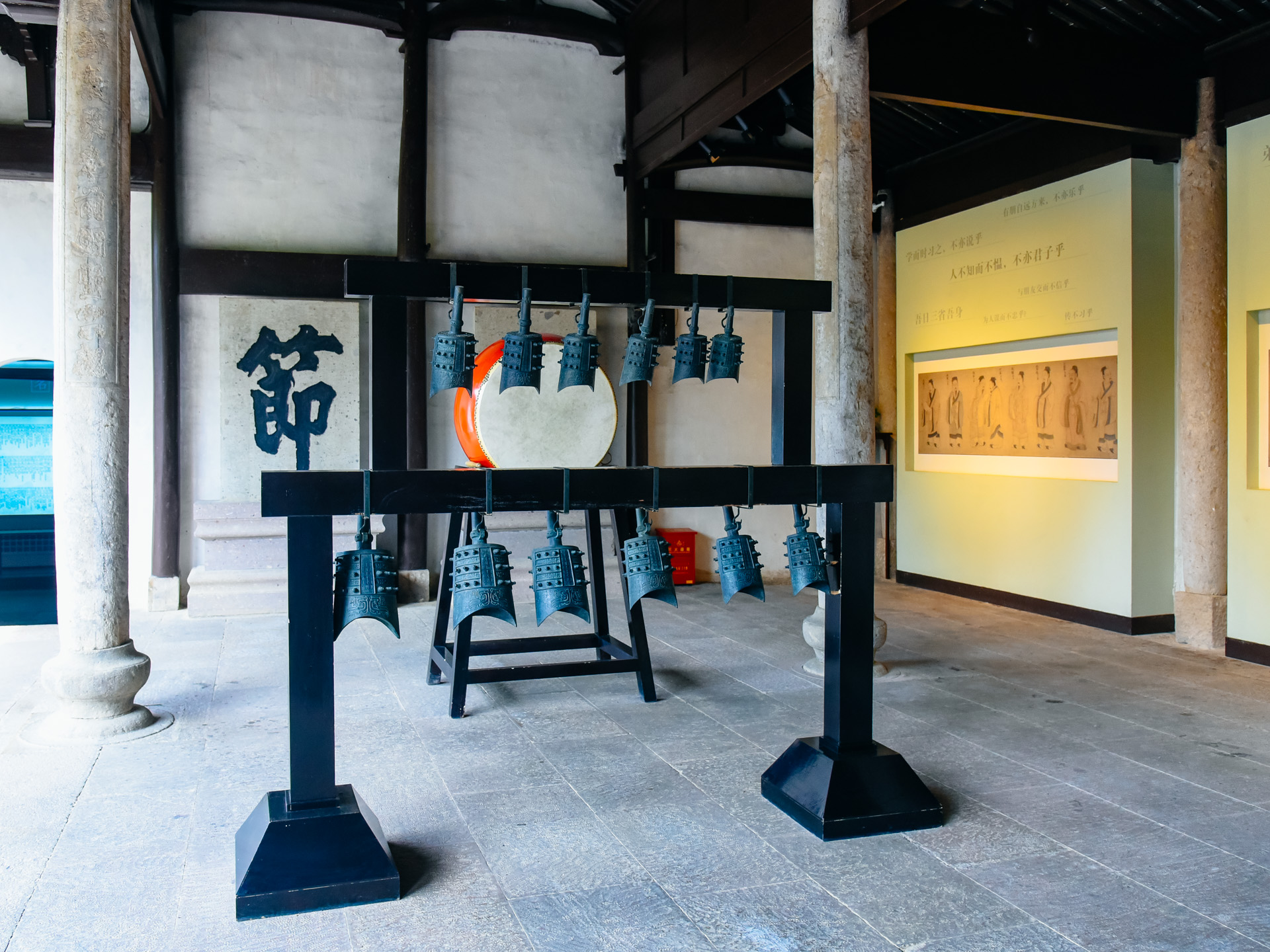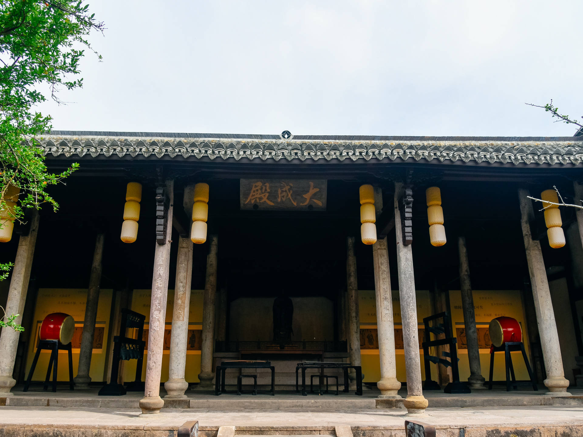 大成殿内则供奉的是孔子,并且有编钟等古乐器,古韵悠扬,诗书氛围拉满。