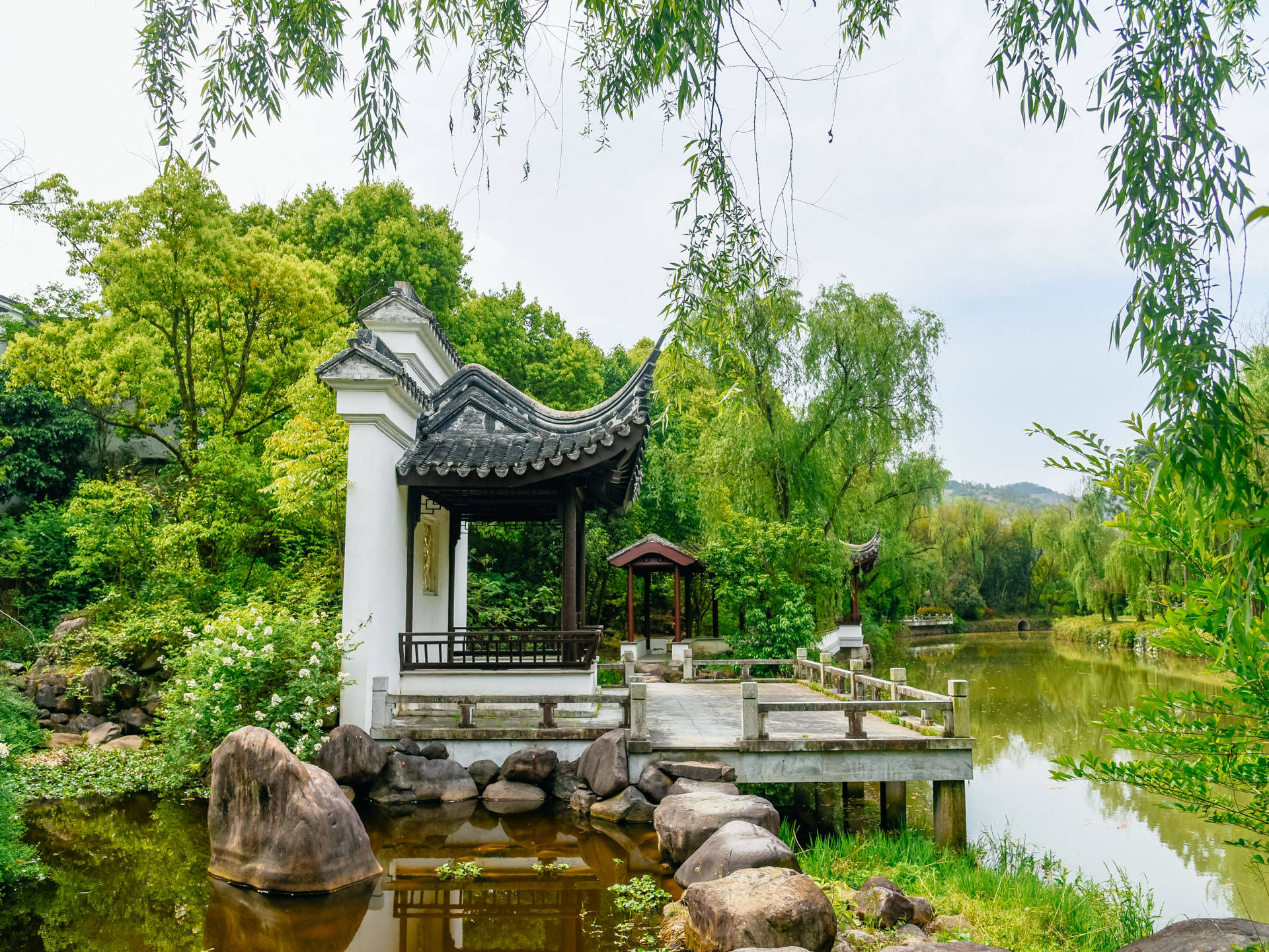 在书院后侧,有一潭湖水,名曰“鉴湖”,湖水环绕书院,名为“桐江”,而湖水环绕之处,遍植树木,还有江南特色的亭台楼阁,真令人赏心悦目。看这郁郁葱葱的树木,这一池碧潭,颇有想“吟诗作画”的感觉呢。这边也是拍照的好去处,能拍出自带诗书气质的感觉来。
