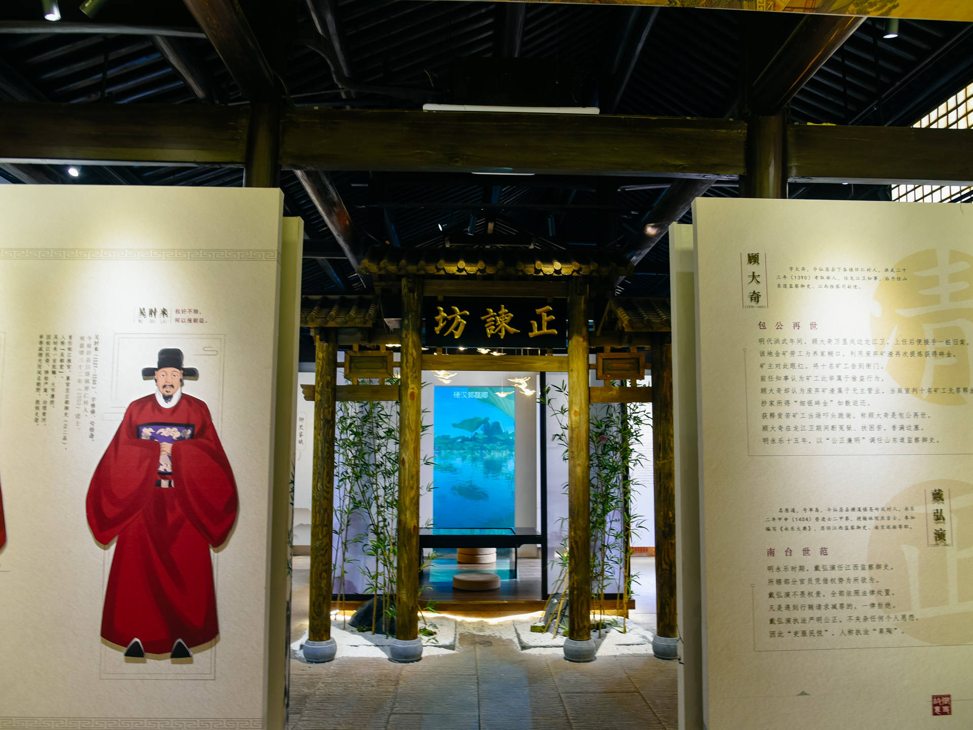 两旁的展馆也不容错过,御史文化厅主要介绍了我国古代监察制度的历史沿革,以及仙居镇52名御史监察官为官做人治家的清风传承和他们激浊扬清的辉煌历史。而书院文化厅则展示了桐江书院的传承与发展,通过这些文字图片能了解到“江南第一书院”深厚的文化传承。