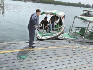 记者日前来到西城区一家热门游船公园。靠近该公园北门的一处码头,是四人和六人电瓶船、脚踏船的购票处。从购票到上船的半小时内,记者未见关于游客穿救生衣的指示标识及说明,工作人员也没做任何提醒和指导。