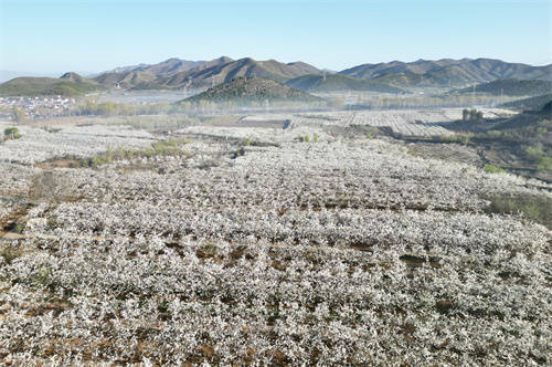 密云区不老屯镇漫山遍野的梨花盛开如雪,花香四溢,预示着又一个丰收之年 冷富桂摄