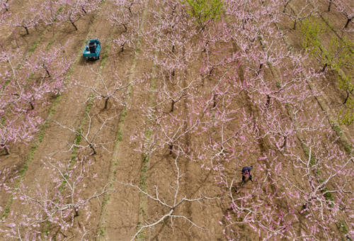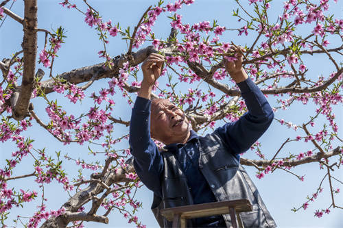 桃花满枝人欢笑,平谷区大华山镇桃农疏花,祈盼丰收 李治国摄