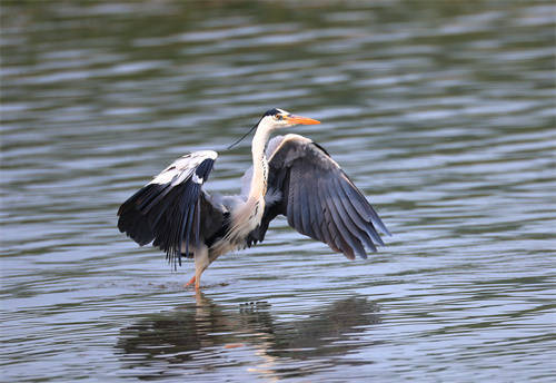 暮春时节,一只苍鹭傲立在沙河湿地的水面上 孙长庆摄