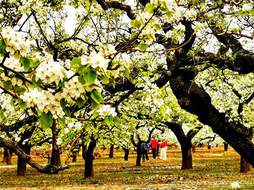 房山区琉璃河镇百年梨树花开似雪 游人陶醉其中 邱强摄