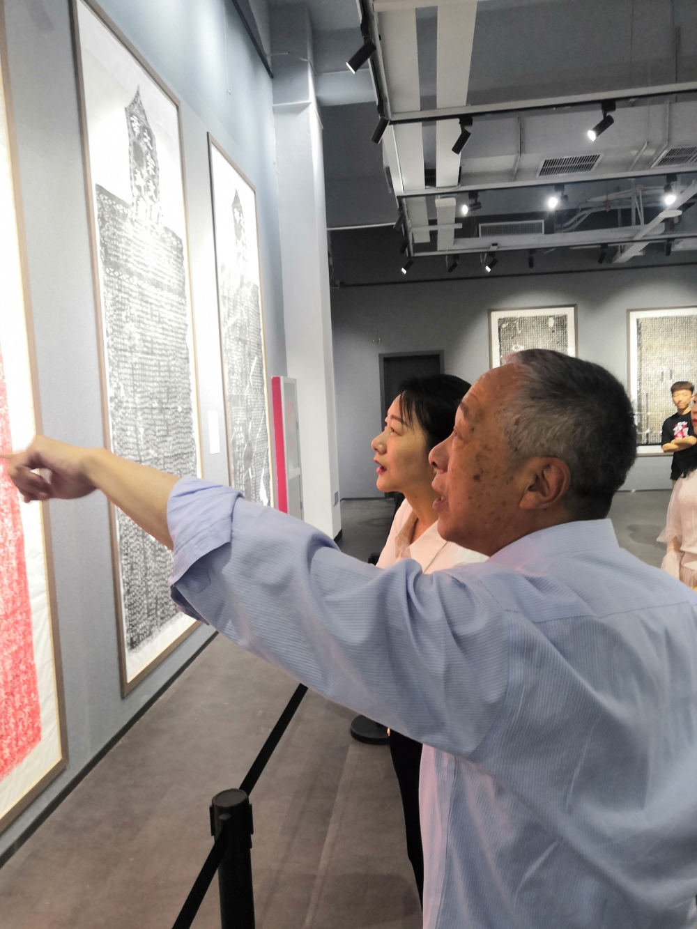 李仁清,男,1963年5月出生,河南省商城县人,非物质文化遗产继承人,从事传拓工作30余年。今天,我与李仁清先生在1号馆见面。我们先是听了国家图书馆研究馆员冀亚平先生的《拓片的产生与鉴定》专题讲座,后又参观了1号馆馆藏拓片。拓片都是李仁清先生从上万件拓片里精选的几百件精品。其中,《北魏供养飞天》里的飞天,细眉秀目,眼帘低垂,面容沉静,双手各执一桃,前有涌起的云纹衬托,这云行带飞天更增强了飞翔之感。《北魏协侍菩萨、飞天、莲花造像》里的菩萨,直立而腰微侧,双目下视,面容沉静。左侧平雕莲花,顶部飞天及卷草纹,给人立稳而不失态美,欲飞将飞而不失轻盈之势。《释迦牟尼造像》拓片高242厘米,宽108厘米,是典型的莲瓣背屏式一佛二菩萨像。三幅拓片重现了我国史上文明的瑰丽与精彩。《皇帝礼佛图》、《皇后礼佛图》拓片里,孝文帝头戴冕旒,身穿衮服,在诸王、大臣及侍从的随侍下缓缓而来,生动再现了北魏时期的社会生活风貌。孝文帝是中国历史上有建树的帝王。孝文帝进行了艰难的汉化改革,允许鲜卑族人与汉族人通婚,全盘接受了汉地的语言、文化、风俗,推动了佛教的信仰与传播。不少人谈起北魏孝文帝来,言语里总是带有感叹赞叹之意。北魏是一个让后人敬仰、追忆和怀念的时代。《升仙太子碑》是武周时代武则天撰(文)并书(写)的。观者若逐字逐句读下去,会发现里面有武则天新造的十几个字。《大唐碑》位于河南省郑州市登封嵩阳书院大门外西侧,通高9.02米,宽2.04米,厚1.05米,重约80余吨。碑制宏大,为嵩山地区石碑之冠。此碑刻于唐玄宗天宝三年。唐代书法家徐浩为其碑献上书艺。书写的字体为八分隶书,姿态端正,刚柔并济,笔法遒雅,堪称唐代隶书的代表作,是中国书法宝库中一颗璀璨的明珠。2001年6月,《大唐碑》被中华人民共和国国务院列为第五批全国重点文物保护单位。