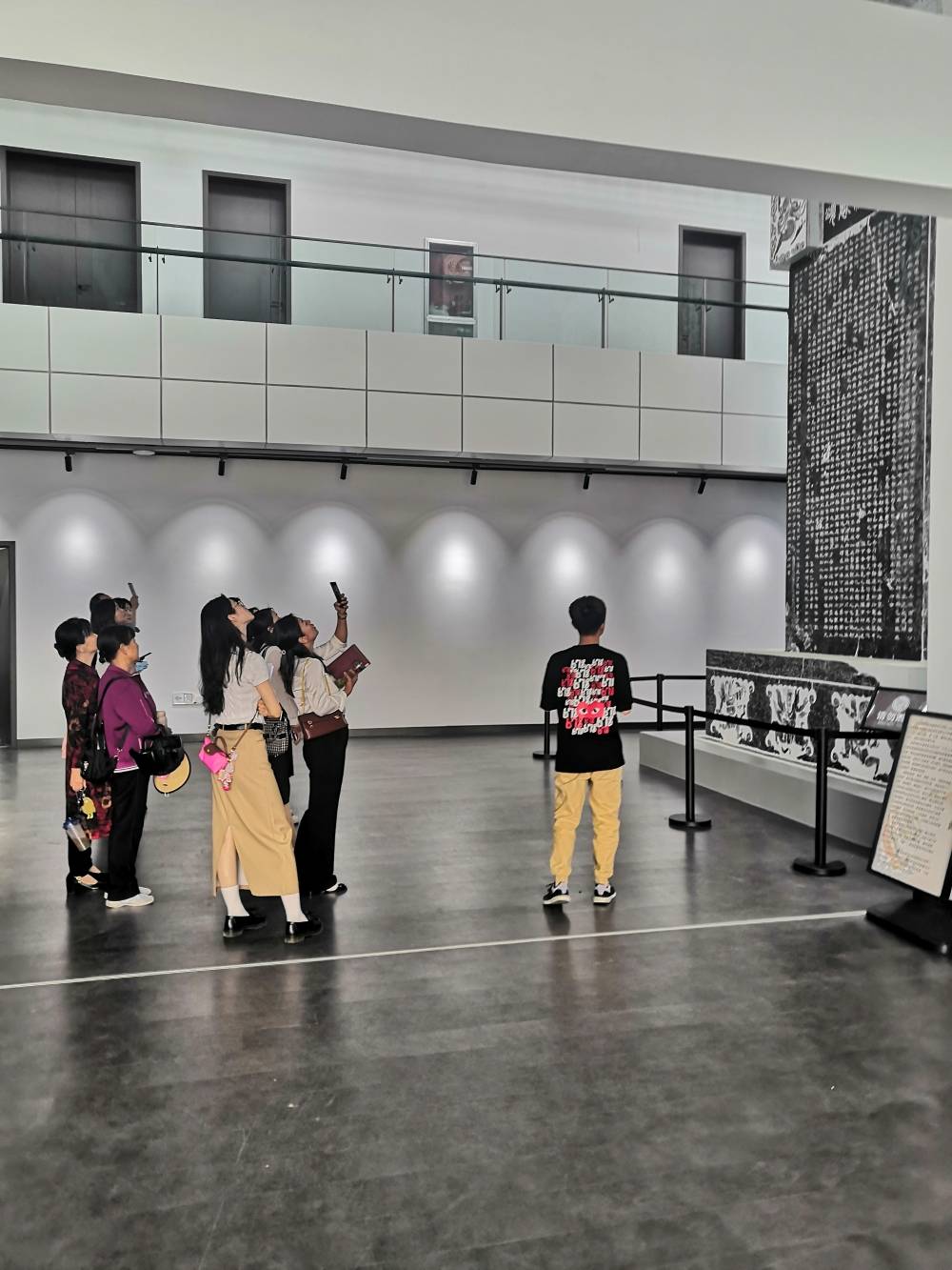 ④参观者在商城红色小镇1号馆参观《大唐碑》拓片。