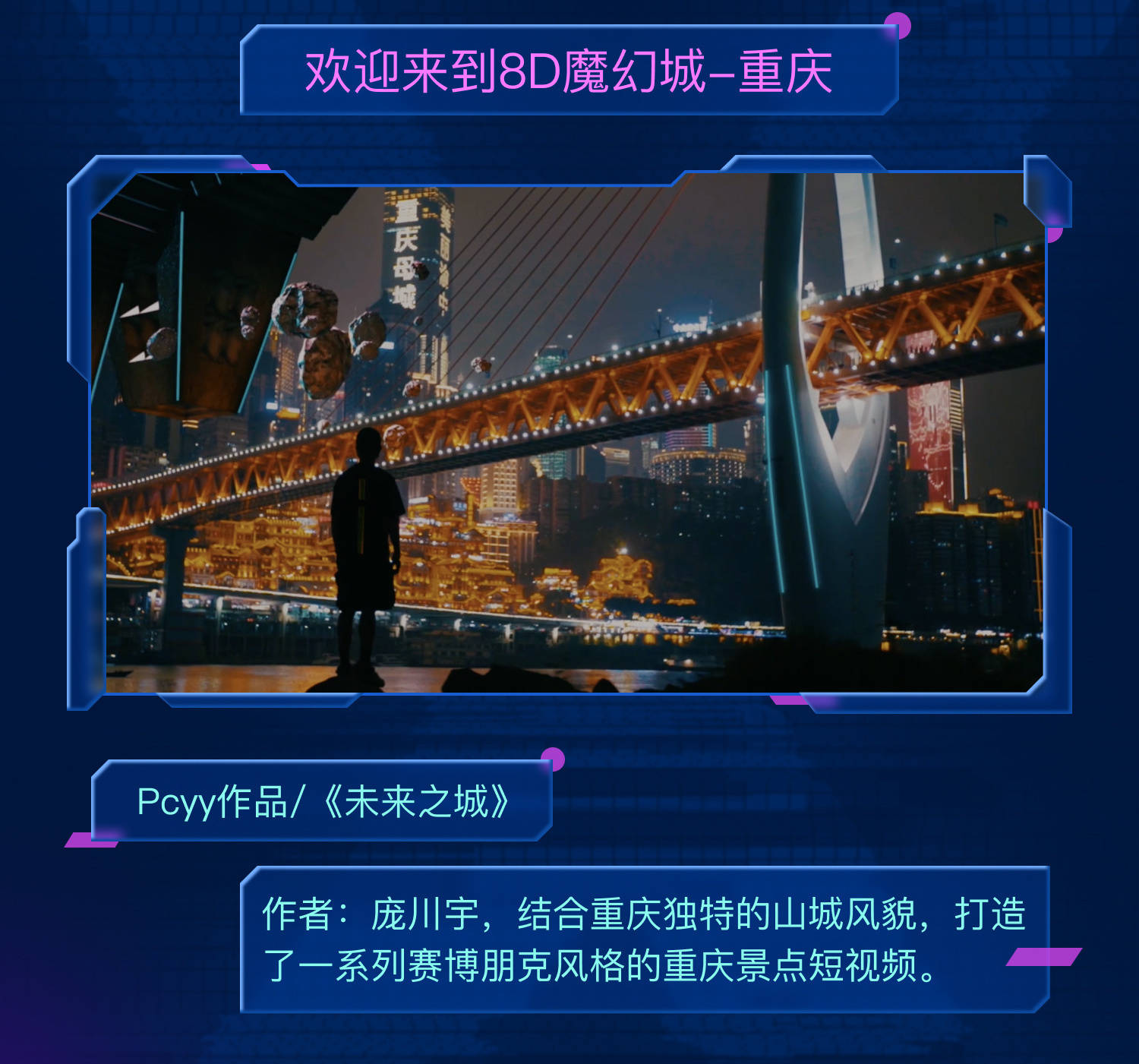 图 5:美图秀秀和摄影师合作打造赛博朋克风格的重庆景点短视频
