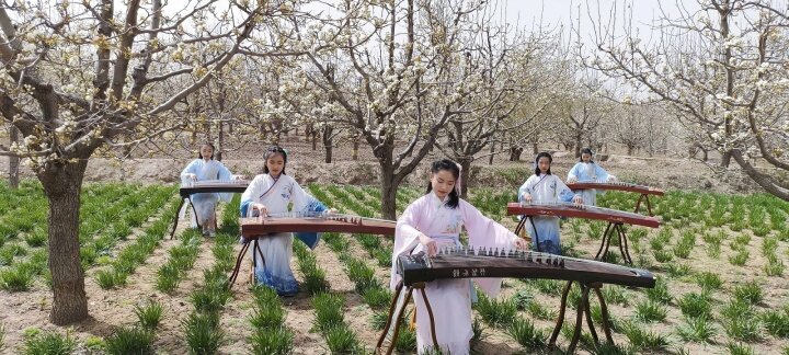 百年梨园品花香、汉服体验、古筝弹奏表演……记者从相关部门了解到,今年的梨花节比起往年平添几许古风:百年梨树下,身穿汉服的女子穿梭其中、古筝名曲、绘画相伴……好一派国风入画的梨园春景。