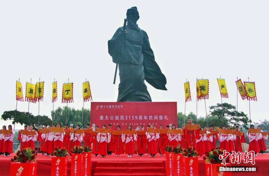姜太公、齐桓公、管仲……这也是一片名家辈出的热土。在淄博,你可以通过不同的方式走近了解这些出现在历史课本中的人物。图为在姜太公诞辰3159周年之际,来自中国各地的姜氏、吕氏、丘(邱)氏、崔氏等280余位姜太公后裔宗亲代表齐聚齐国故都所在地山东省淄博市临淄区,寻根问祖、祭奠先人。